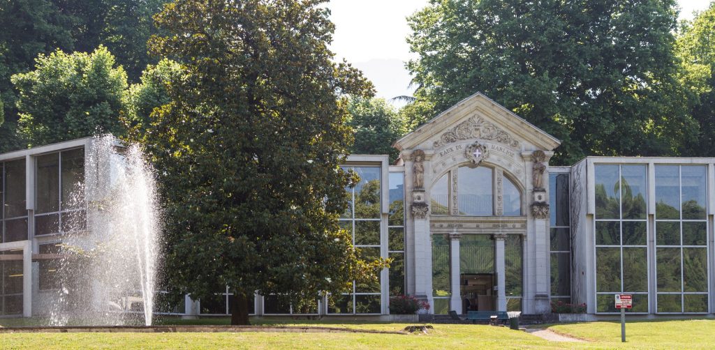 Niché dans un écrin de verdure de 10 hectares à lentrée dAix-les-Bains, le domaine de Marlioz dispose de thermes, dun centre de balnéothérapie et dun complexe hôtelier (Mercure Ariana et Mercure Acquaviva). Létablissement thermal est spécialisé dans les voies respiratoires, affections ORL et muqueuses bucco-linguales. Chaque année, 6 000 curistes viennent respirer, inhaler ou boire leau de Marlioz*.