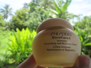 La seule façon d’être sûre de son choix, c’est de tester ! C’est ce que nous avons fait sur une nouvelle crème signée Shiseido. Le flacon est beige rosé légèrement, un peu vieillot, mais bon ce n’est qu’une question de goût. Affiché dans les 55 euros, elle s’appelle « Benefiance », elle se présente comme une « crème intensive nourrissante et réparatrice ». Dans des conditions « métropolitaines » d’utilisation, on peut lui reprocher un parfum un peu prononcé, mais une bonne texture, très agréable et une sensation d’hydratation valable. Par contre sous les tropiques, bannissez cette crème de vos armoires car elle finira à la poubelle, en quelques heures à 27°c, elle vire, le parfum est insupportable et la crème devient piquante !