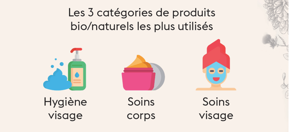 Les produits cosmétiques bio ou naturels les plus prisés sont les soins pour le visage (57%), les produits d’hygiène pour le visage (57%) et les soins pour le corps (58%). Les produits pour cheveux bio ou naturel sont également les plus utilisés (55%). Comme pour l’alimentation, le frein au développement de ce marché est le prix des cosmétiques bio.