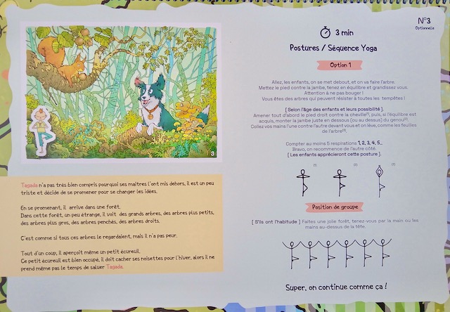 « Yoganimé est un guide pratique et ludique avec des postures expliquées et illustrées, on suit les aventures d’un chien affectueux et facétieux appelé Tagada. Simple à utiliser, Yoganimé permet en toute autonomie de proposer des séances de yoga aux plus petits. Le livre propose des exercices relaxants et dynamisants avec des illustrations pour bien visualiser et comprendre les postures à réaliser avec les enfants de 3 à 8 ans. Mémoriser les mouvements grâce à cet imagier devient alors un vrai jeu d’enfant ! Yoganimé transportera vos petits yogis dans un monde où les loisirs et le bien-être ne font qu’un. Un véritable classique pour aider les enfants à retrouver leur sérénité, développer leur coordination, améliorer leur concentration et libérer leur créativité ».