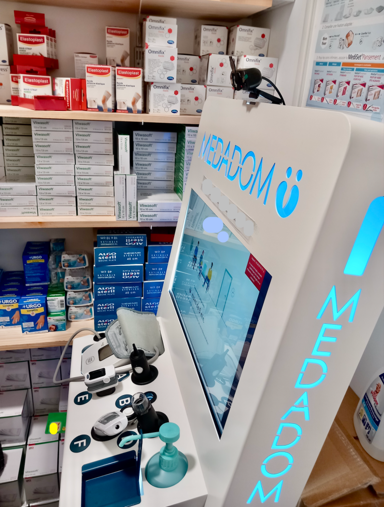 Simple et rapide, la télé consultation s’est déroulée sans rendez-vous, dans une officine de pharmacie à deux pas de chez elle. « Je suis arrivée au bon moment ce lundi 9 janvier à 10h, il n’y avait personne en attente devant moi, » précise Catherine. Après avoir inséré sa carte vitale, ses coordonnées ainsi que ses informations bancaires pour le paiement dans la borne de télé consultation médicale Médadom, Catherine a pu -une quinzaine de minutes plus tard- échanger avec un médecin via l’écran. Face à elle, tout un tas d’objets connectés : un otoscope, un dermatoscope, un oxymètre, un thermomètre, un tensiomètre et un stéthoscope qui permettent au médecin d’affiner son diagnostic en temps réel grâce aux différentes constantes. Guidé par le médecin, le patient est autonome dans une cabinet doté de ces équipements de diagnostic. Bien sûr, le distanciel a les contraintes de ses avantages, l’examen clinique est limité puisque le médecin ne peut pas toucher son patient pour effectuer une palpation.
