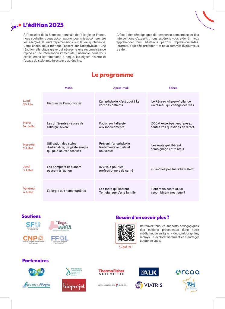 Semaine mondiale de l’allergie qui se déroulera du 29 juin au 5 juillet : cette année l’anaphylaxie est au cœur de la semaine mondiale de l’allergie 2025.