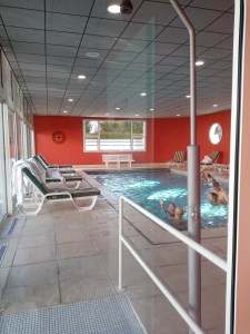Bref, une fois lovée dans le fameux peignoir, on aperçoit la piscine ! Ah mince, pas de maillot, dommage car l’accès au Spa nous donnait la possibilité de piquer une tête avant de passer sur la table… Et comme on est en avance. Dommage, la prochaine fois !