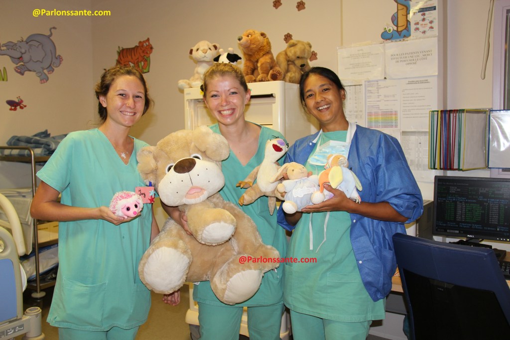 « Oui, c’est pourquoi il ne faut pas se louper. La salle a été décorée, nous avons de grosses peluches, des gommettes pour les masques et des stylos parfumés. Les enfants adorent lire nos prénoms sur nos badges. Peu à peu, les choses bougent, mais ce n’est pas simple car il faut aussi des financements. Nous commençons à nous faire connaître, ça aide. Les crayons parfumés, je les ai ramenés de France, on n’en trouve pas sur le territoire. La pharmacienne de l’hôpital a commandé des coiffes avec des motifs, des fleurs, ça changera du vert, mais tout cela à un coût et c’est là que l’association a son rôle à jouer pour financer des améliorations pour soigner l’accueil des enfants. Nous aimerions avoir une fiche d’information sur l’enfant avec des précisions sur ses goûts et ses passions, cela permettrait de faire connaissance plus rapidement. Pourquoi pas rencontrer les familles et l’enfant lors de l’entretien avec l’anesthésiste qui est obligatoire ? C’est une idée, nous travaillons dessus, mais nous sommes une association et tout repose sur les bonnes volontés, mais ça avance bien ».