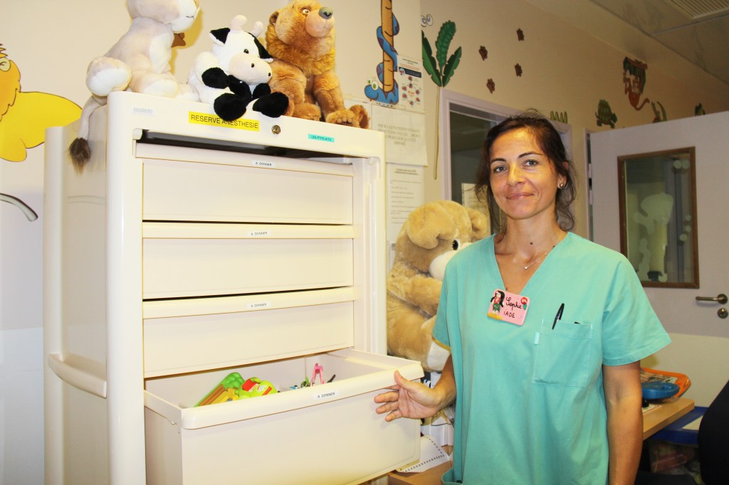 “L’hôpital, c’est effrayant pour un enfant, avec que des adultes vêtus de vert dans un environnement blanc. Quand l’enfant arrive au bloc, il ne voit que des yeux, les visages sont masqués, il y a des bruits nouveaux, parfois des cris et puis il y a les soins, les piqûres, la séparation avec les parents qui s’annonce… C’est angoissant. Notre association tente d’améliorer au maximum cet accueil pour gagner la confiance de l’enfant et rendre les gestes techniques et les soins plus ludiques”, explique Sophie Edelson.