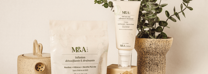 M&A Lab c’est un concept de cosmétiques pour prendre soin de soi de façon holistique (globale). Un soin est toujours associé à un complément alimentaire ou une infusion. C’est ce duo In&Out qui permet à la marque d’afficher des soins actifs pour des routines beauté-bien être naturelles et complètes. Les formules issues de recherches sur des actifs naturels, à l’efficacité démontrée dermatologiquement, sont conçues par la marque en France. L’ambition de la marque ? Concevoir les produits de demain !