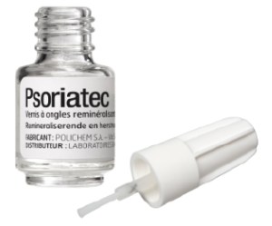 Les Laboratoires Bailleul ont conçu un vernis adapté aux besoins de tous les ongles et même des plus sensibles comme ceux affectés par un psoriasis unguéal. Psoriatec doit être appliqué chaque jour sur des ongles propres et secs. Il s’élimine facilement à l’eau SANS DISSOLVANT. Les essais cliniques ont démontré qu’une application régulière de Psoriatec permet de réduire la dystrophie unguéale, le dédoublement et la fragilité des ongles et ainsi d’améliorer leur aspect général. Prix : environ 13 euros.